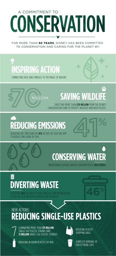 Outra medida anunciada é a abolição do uso de copos plásticos de poliestireno na companhia como um todo (escritórios e subsidiárias), e o fim das sacolinhas plásticas nos parques, lojas e cruzeiro. Em substituição, serão vendidas sacolas reutilizáveis.