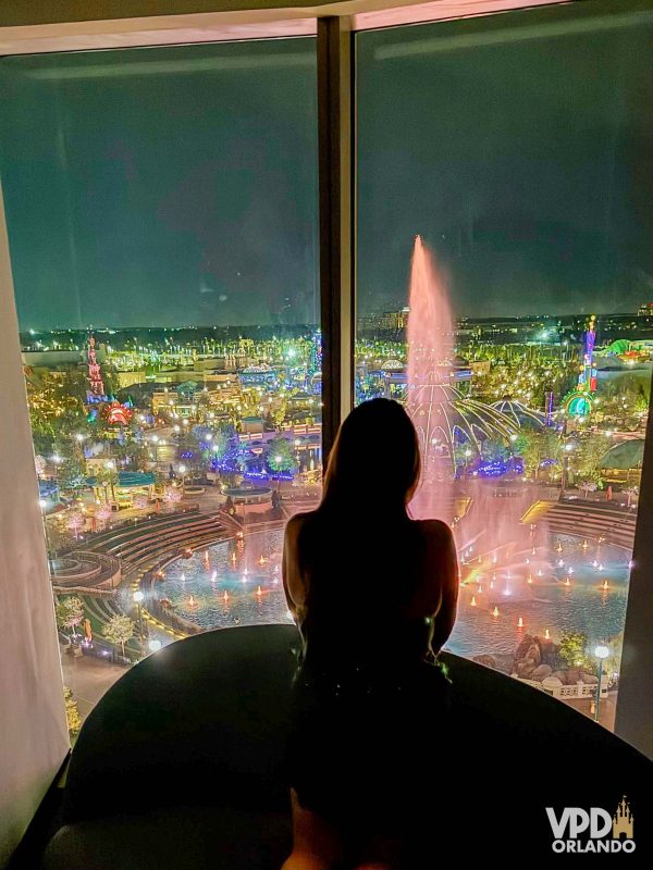 A vista para o parque é quase um imã, é muito difícil conseguir fazer outra coisa quando se está no quarto a não ser olhar para o Epic. Dali você tem uma vista muito impactante, de praticamente o parque inteiro. De dia é incrível ver as pessoas se movimentando pelas diferentes áreas do parque, e à noite as milhares de luzes espalhadas por cada cantinho são um espetáculo à parte.