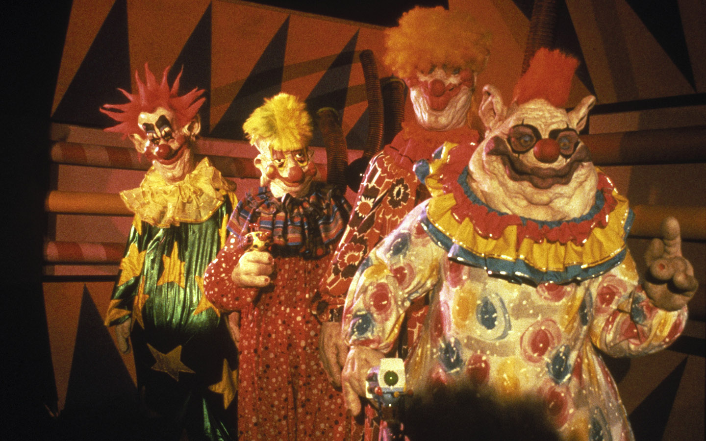 O segundo tema é baseado no filme Palhaços Assassinos do Espaço Sideral, um filme de terror trash-cult dos anos 80 que eu nunca assisti por motivos óbvios, mas traz alienígenas que parecem com palhaços e que querem matar todo mundo. Eles fazem ninhos de algodão doce pra colocar suas vítimas, e tudo isso estará nessa Scare Zone do parque.